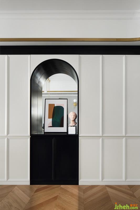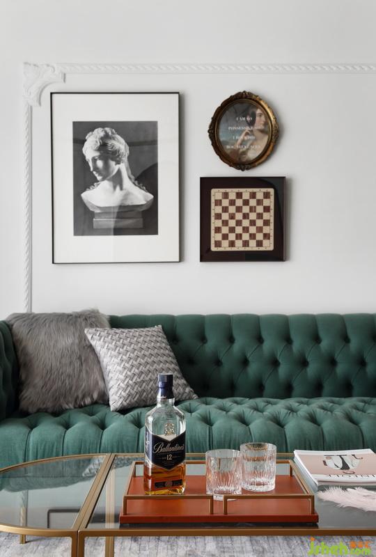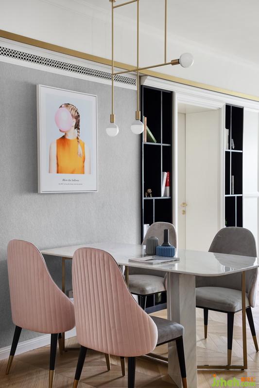 實地看房后,客餐廳一體,顯得比較大氣,但缺少想要的大量儲藏空間,東西的雜亂擺放會顯得凌亂。由于是老房拆除,在控制成本的前提下保留了一部分吊頂和原有整體中央空調(diào),使得設計要配合原有機器風口的位置。色彩選用灰粉,灰綠和黑色,基調(diào)統(tǒng)一的軟裝飾品,呼應主題風格。材質(zhì)選用較網(wǎng)紅的金屬鍍銅,小手工磚,水磨石,天鵝絨,魚骨拼地板等,配合拱形弧形等造型元素讓整個空間顯得明快且有品質(zhì)。
