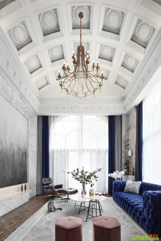 結(jié)構(gòu)方面改動(dòng)頗少,而在軟裝方面重點(diǎn)著墨??蛷d穹頂靈感來源于羅馬教堂,取其形舍其式,呈現(xiàn)出一種典雅的秩序美。