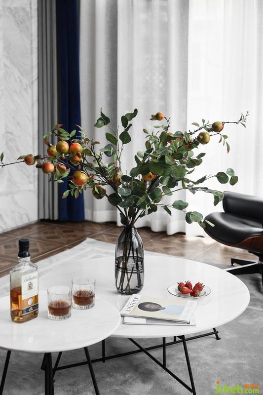 在材質(zhì)方面我們用到了墻布、大理石和地磚等,在保證美觀的同時(shí),滿足生活的實(shí)用和舒適??蛷d的主墻面,大理石走邊,中間選用抽象麥穗定制墻布,配以休閑帶質(zhì)感的家具,讓整個(gè)空間散發(fā)出一股濃濃的藝術(shù)氣息。
