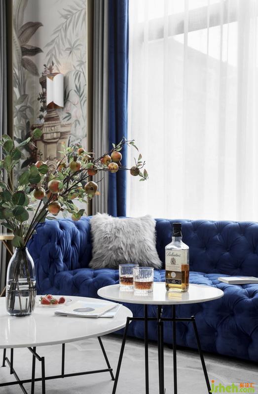 沙發(fā)兩側(cè)的墻布裝飾主義風格,既有中國工筆畫的精致細膩,又有西方人對東方元素的提煉和改良,搭配傳統(tǒng)中式玄關(guān)柜,將東西方文化的融合演繹的恰到好處。