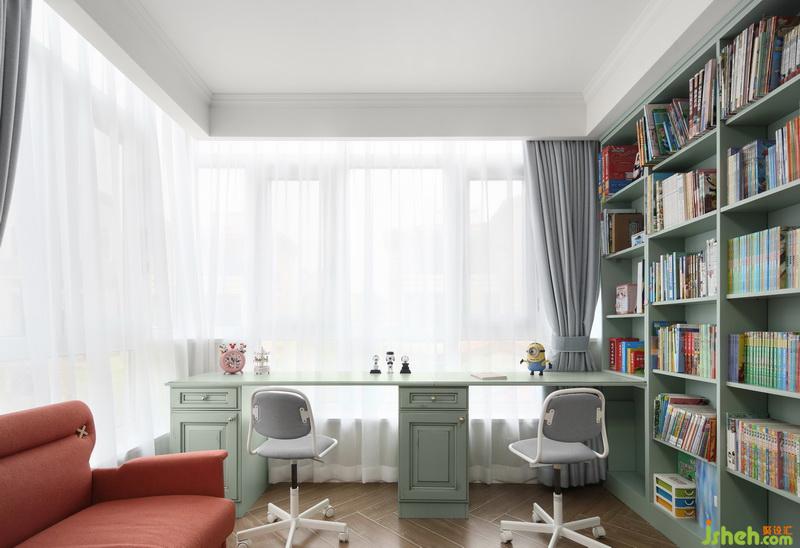 兒童房空間,考慮家中兩個寶寶要有充足的活動空間,所以將兒童房旁的露臺也納入了室內整體設計,規(guī)劃出了包含睡眠區(qū)、休息區(qū)、娛樂區(qū)于一體的完整起居空間。