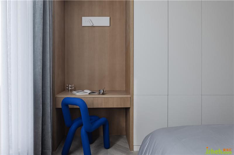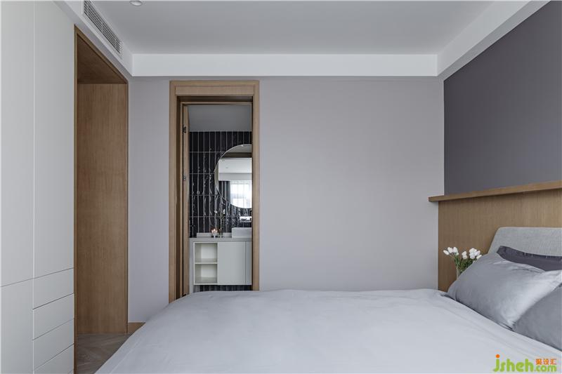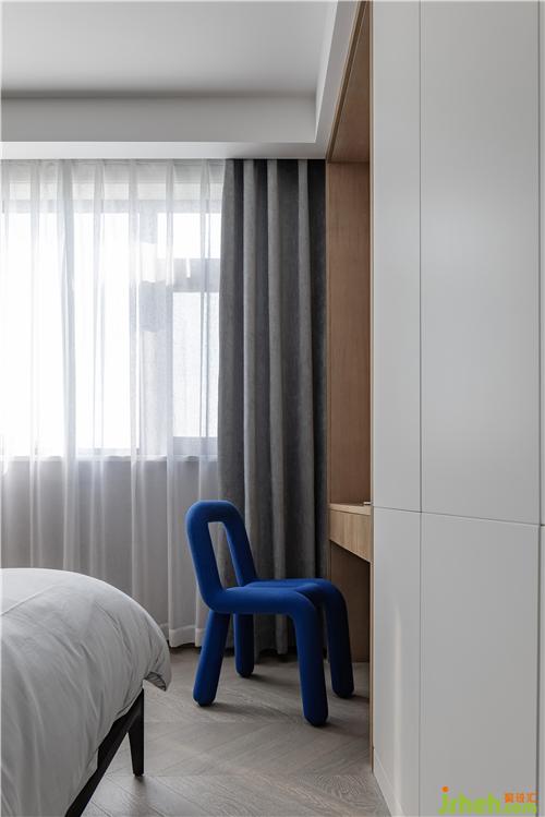 主臥在材質(zhì)以及色彩上呼應整體,大量柜體解決日常所需儲物功能。
