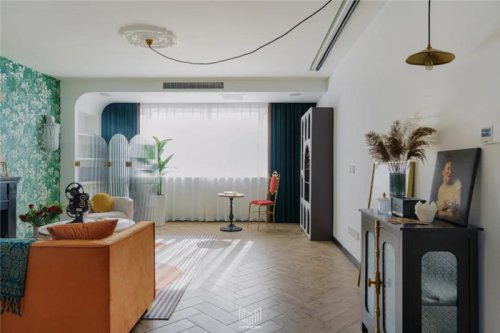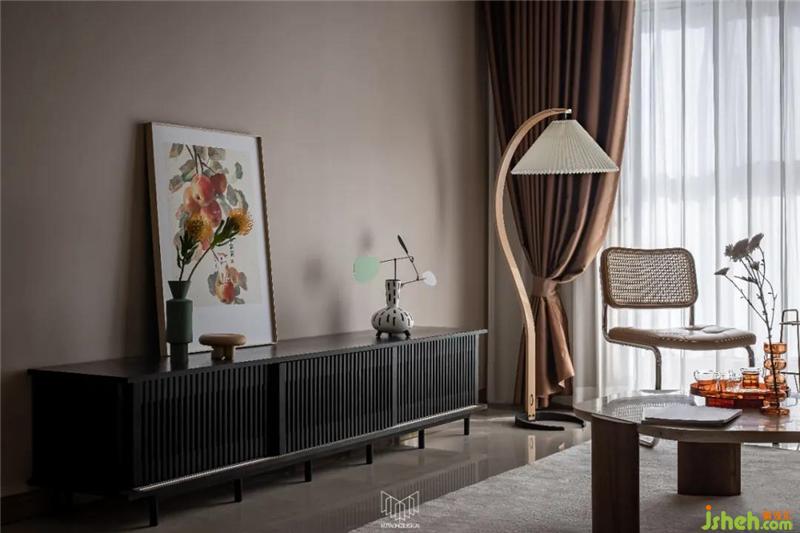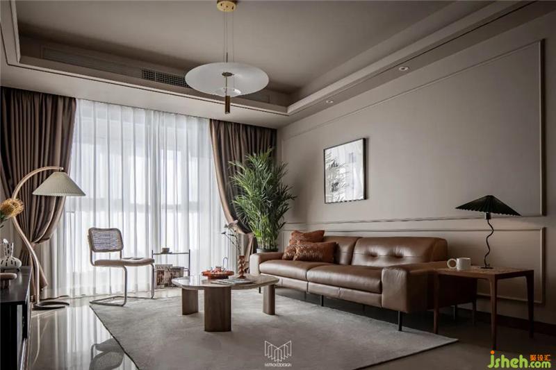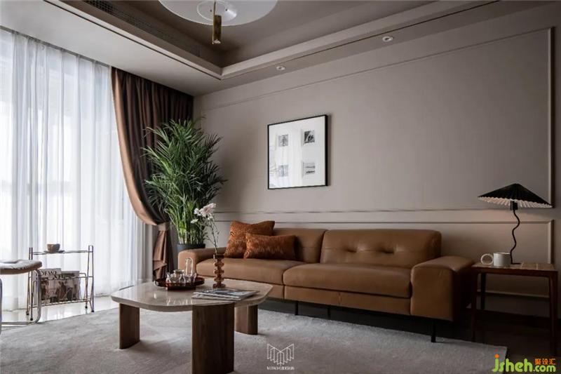 摩登復(fù)古質(zhì)感的CAMPAIGN三人沙發(fā),寬扶手設(shè)計可充當(dāng)臨時的置物平臺,南京裝修設(shè)計沙發(fā)兩側(cè)分別是MUNA柚木花磚邊幾,與筑物片刻金屬雜志架。