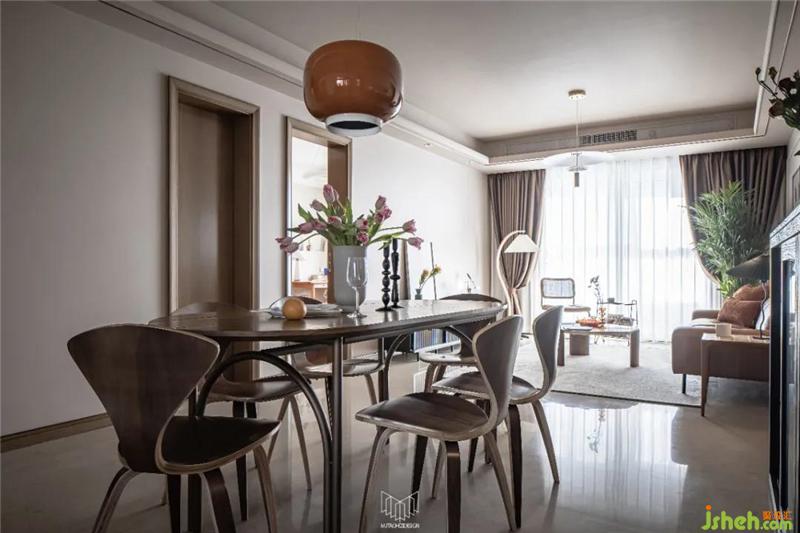綜合考量圓形餐桌與方形餐桌的優(yōu)缺點與空間適用性,選擇了這款實木手工做舊桌面搭配拱形門造型金屬桌腿托圓桌。餐椅選用Norman Cherner設(shè)計的膠合板椅,用膠合板凹成的椅子,是現(xiàn)代主義最具有特色的作品群之一。