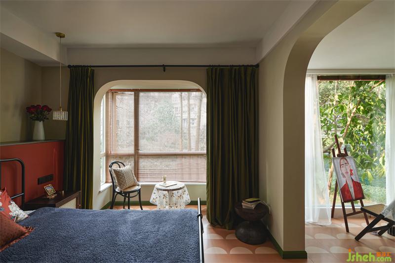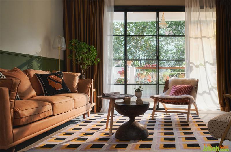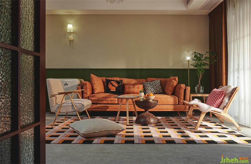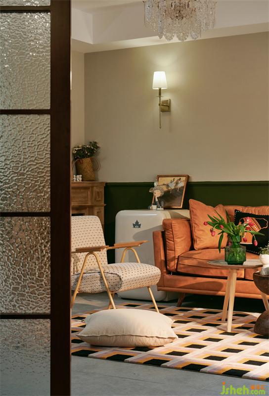 作為主要活動區(qū)域的休閑客廳,以鮮明活潑的氛圍為主,風(fēng)格子地毯打破了原本的沉穩(wěn)和擴(kuò)散,將客廳和臥室聯(lián)通,通過折疊門隔斷及聯(lián)通,跳躍出獨(dú)特的韻律空間。