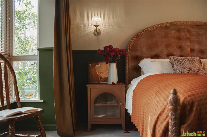 主臥使用大量編織元素,濃濃的手工感,是無限的溫馨與舒適,推開冰花藝術(shù)玻璃門與客廳相連接,被包圍的親和感迅速向周圍散開。