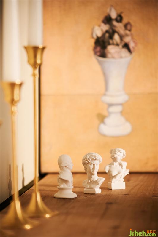 餐廳處于整個中心區(qū)域,餐邊設(shè)有盥洗臺,酒架。另一旁則是大面積的黑色木質(zhì)書架,展示業(yè)主所有的回憶,收藏,手伴等。白色鉤花桌布及藤編餐椅,頓時讓人穿越到兒時。