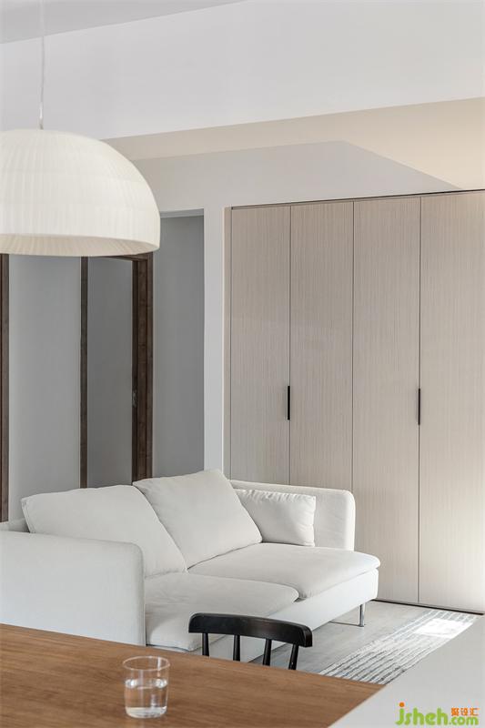 入戶即是陽臺(tái),設(shè)計(jì)一整面落地窗,通透明亮,一進(jìn)屋便有豁然開朗之感,同時(shí)也是家里的萌寵長待的區(qū)域。