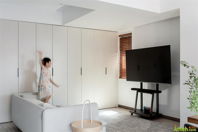 客廳也是一家人的游樂園,只放置活動(dòng)的電視支架,閑暇之余,可感受大屏電視帶來的視覺體驗(yàn),潮玩游戲機(jī)為空間增加了趣味感。