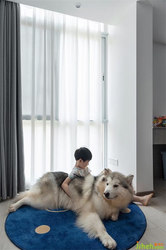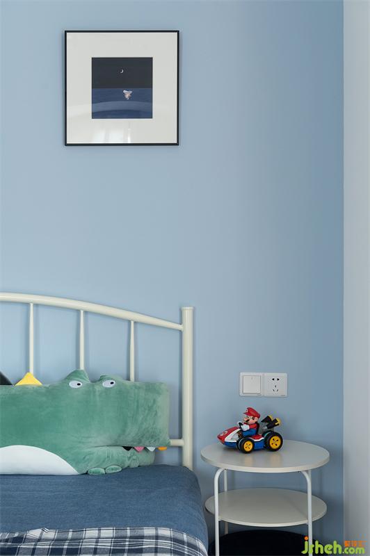 兒童房的色調(diào)是小朋友最喜歡的藍色,配上小小太空員的燈具增加空間趣味性。