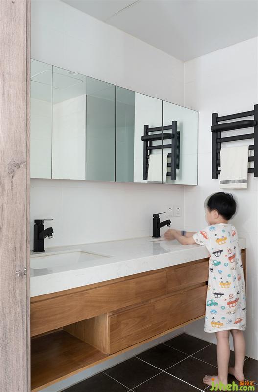 衛(wèi)生間采用三分離式,雙臺盆設(shè)計滿足一家三口人同時使用,馬桶淋浴間分離互不打擾。