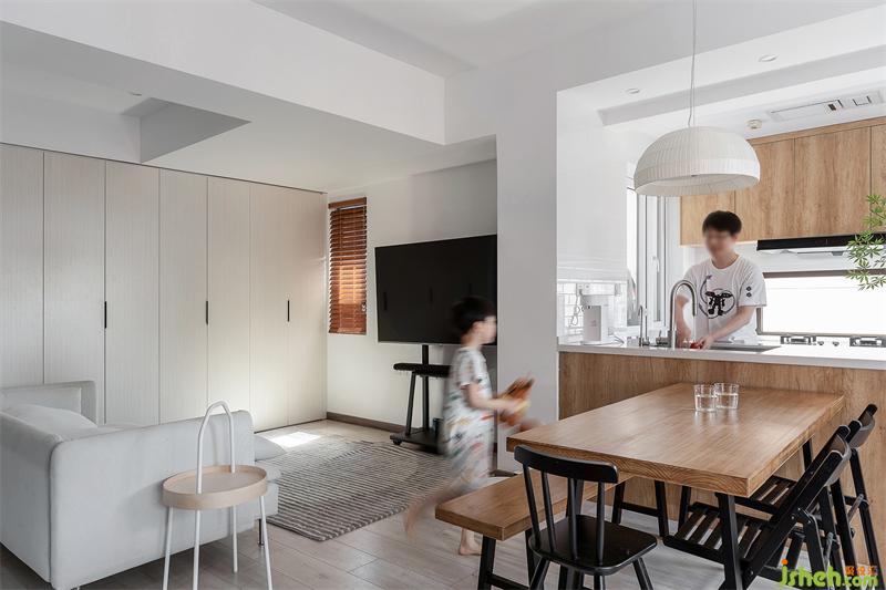 原戶型是一個三房,但為更貼近屋主的需求,將三房改為大兩房,主臥帶一個衣帽間,色調(diào)溫馨簡單。