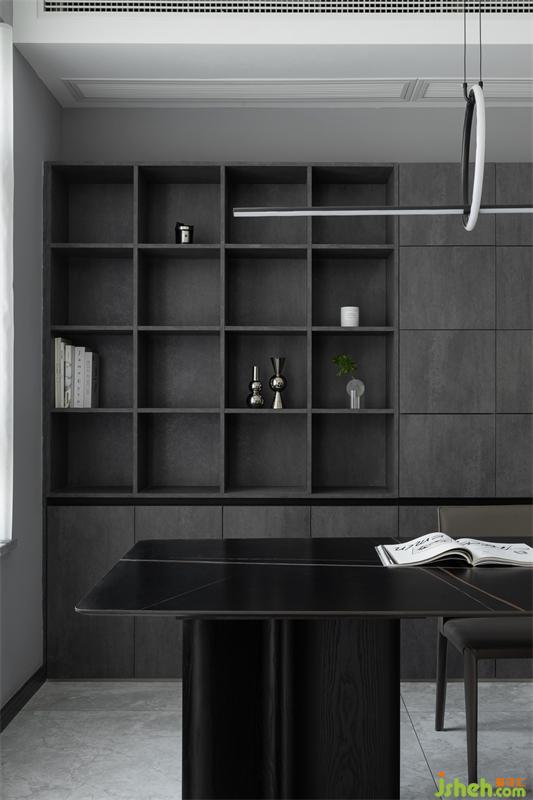 客廳剛而不硬,張而不顯的質(zhì)感風(fēng)格。設(shè)計(jì)是將空間的整個(gè)釋放,將客/餐/廚/書房兼為一體,形成一個(gè)開(kāi)放的大空間,以中性的灰黑為主軸,點(diǎn)綴白色的柔紗,色調(diào)呼應(yīng)的融洽;電視墻的造型簡(jiǎn)潔大方,利用構(gòu)成關(guān)系,在左側(cè)做了壁爐造型,帶給人溫暖。上方做了隱形儲(chǔ)物柜,解決客廳的雜物收納等。