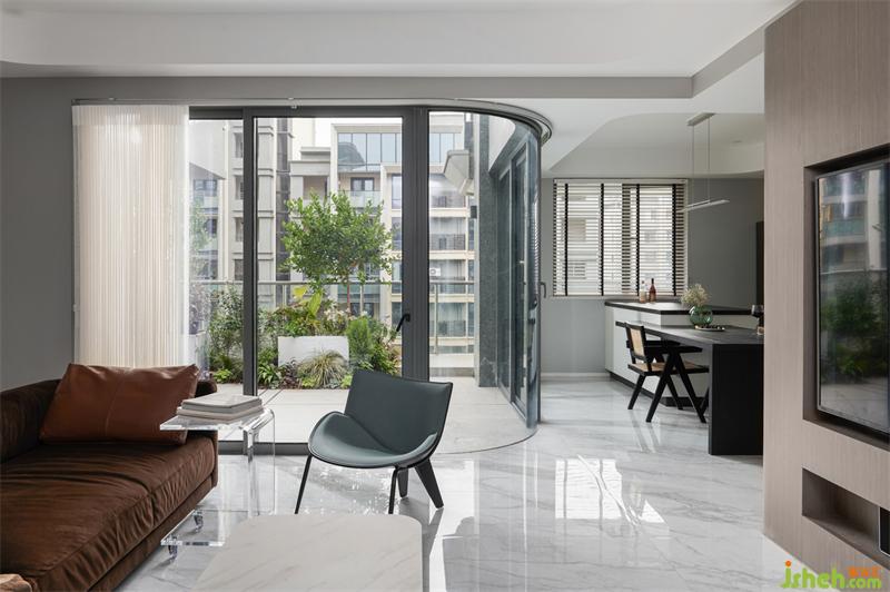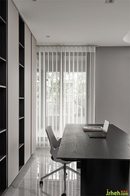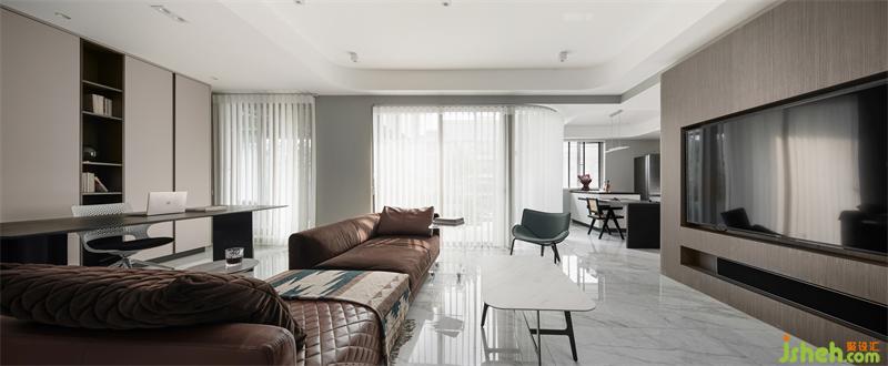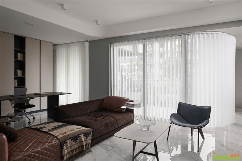 豎百葉代替?zhèn)鹘y(tǒng)窗簾,增加現(xiàn)代感,并隨時(shí)間映射出不同的光影