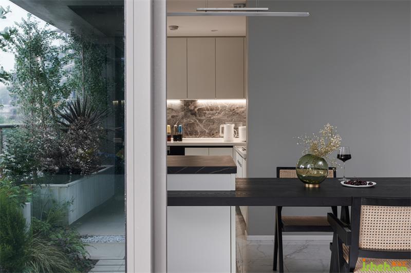 客廳,書房,餐廚空間一體排開,同時(shí)環(huán)繞空中花園,居家就能感受春華秋實(shí)。