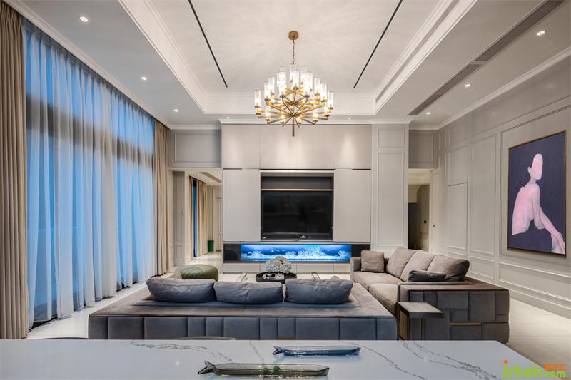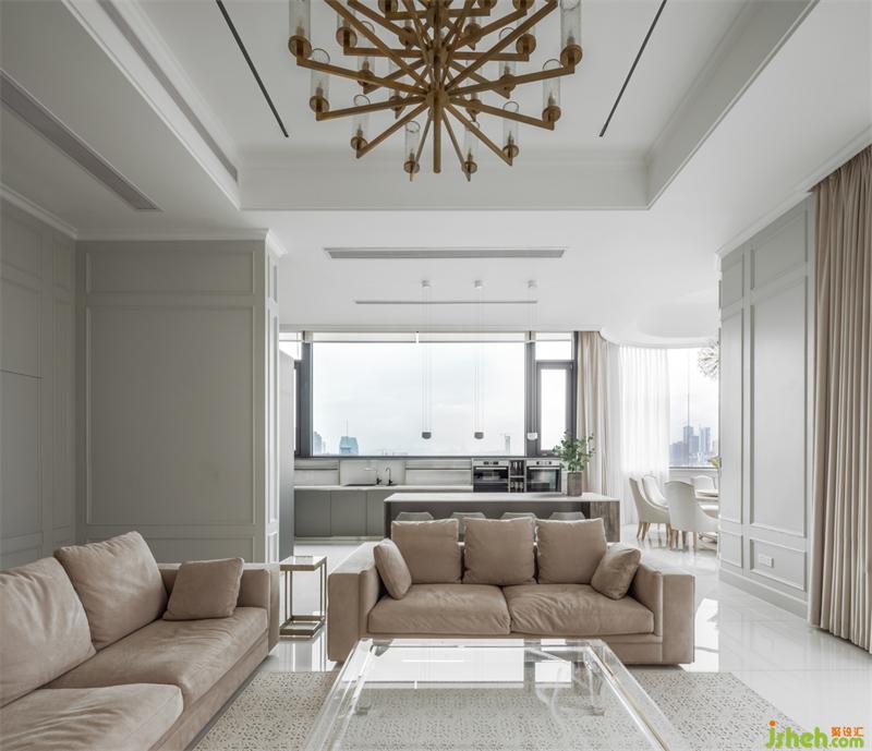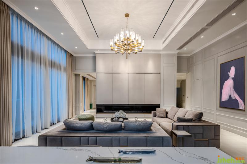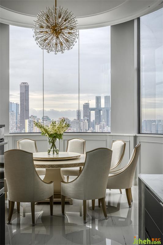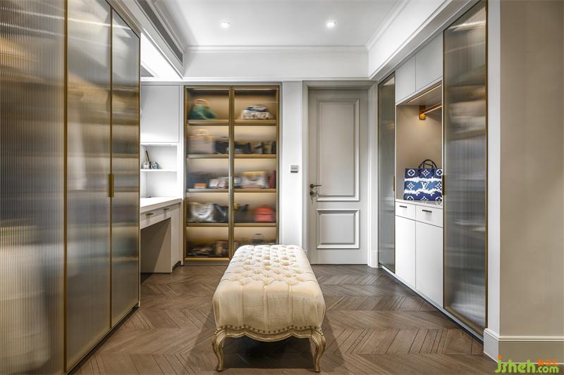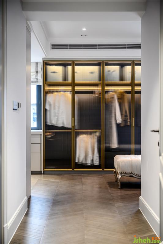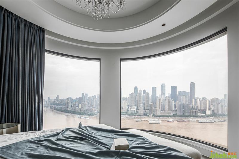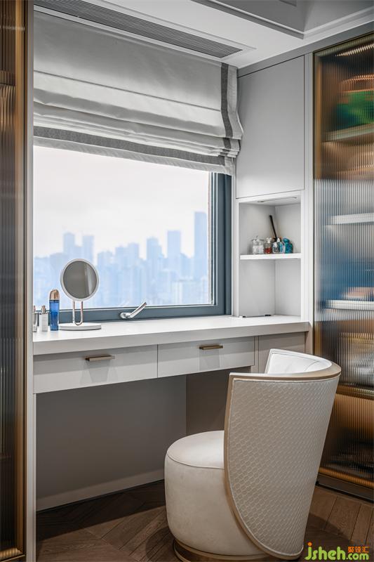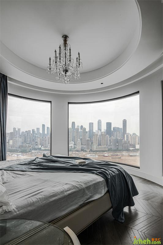主臥的弧形落地窗,窗外是人間繁華,窗內(nèi)是溫暖安全的家;整體定制超大衣帽間,家居設(shè)計(jì)細(xì)分了掛衣,折放,熨燙,包,鞋等分類空間;專屬梳妝臺前,可以看到一整幅大江東流的畫面;一層的公衛(wèi),采用圓弧形設(shè)計(jì)的盥洗間,完美融合了鞋帽間和公衛(wèi)的雙門,公衛(wèi)淋浴間里,更是巧妙的嵌入了一個干蒸房。