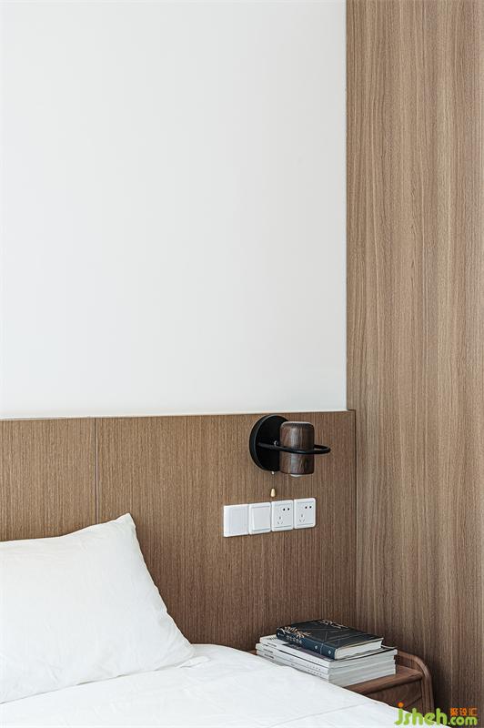 主臥床頭面板選用溫暖色調(diào)的原木色,圓弧收邊的小圓腳床頭柜,使整個空間的線條柔和感放大,陽光的照射釋放了空間活力。滿足了他們早起床邊閱讀的習(xí)慣。