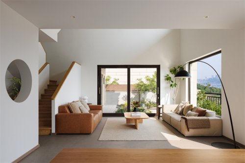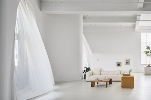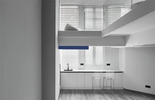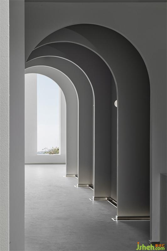 休閑空間在窄長的過道空間的對比下更加寬敞