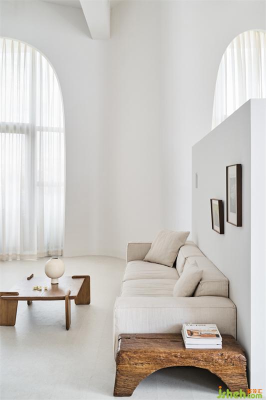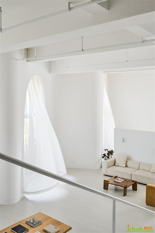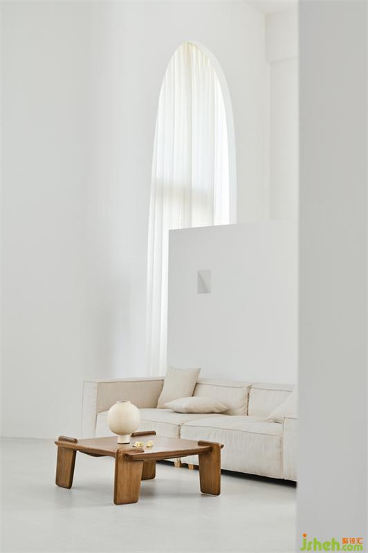 順從建筑的原生形態(tài),以新生的由于常規(guī)改造會面臨面積浪費、造價高、工期長,同時還暗藏安全隱患等情況,設(shè)計師周子鑒決定采用順應(yīng)建筑設(shè)計的方法,用內(nèi)弧線柔化尖角,將高方窗改為高拱門,內(nèi)嵌電動窗簾,在微風(fēng)與陽光的互動中,增加空間的靈動感。姿態(tài)回應(yīng)人們對當(dāng)代空間的訴求。