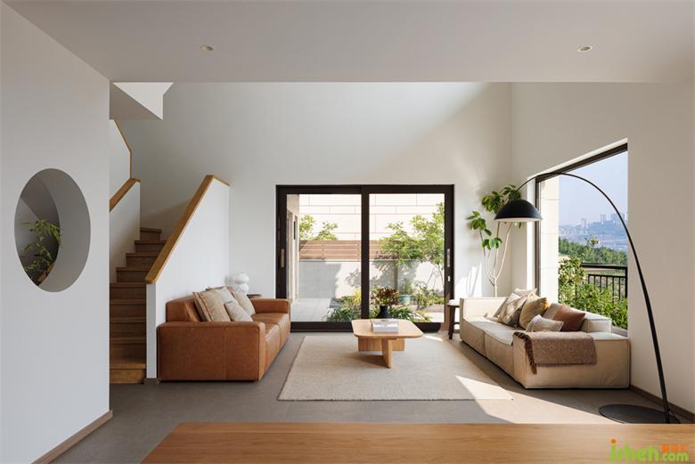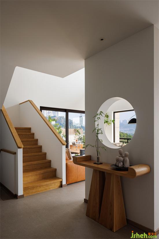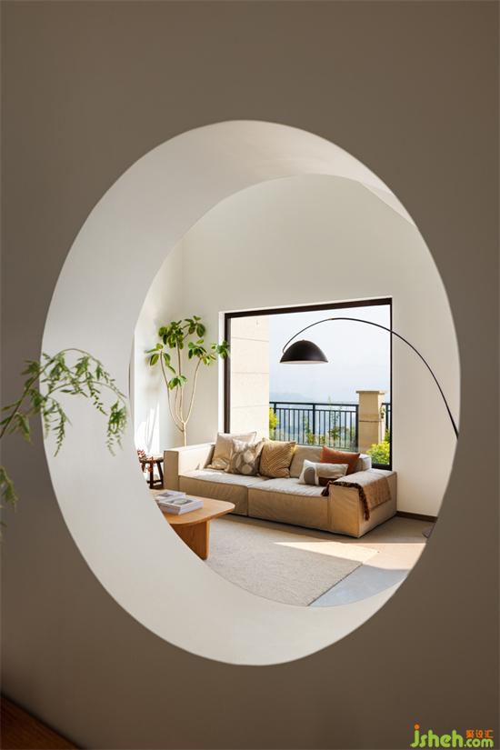 本案為重慶江岸別墅,坐擁極佳視野;重慶江岸別墅裝飾為更加貼合業(yè)主【外在樸素自然,內(nèi)心豐富淡然】的生活態(tài)度,設(shè)計(jì)師周子鑒利用大面積開窗引入自然景觀,以簡單留白營造自然氛圍;于室內(nèi),設(shè)計(jì)考慮動(dòng)線的便利以及居者的舒適性感受,通過挑空、圓洞、弧形、框景等設(shè)計(jì)手法勾勒出“園林中一步一景”的清雋淡雅,淺橡木與白色的貫穿搭配,讓久居城市的人感受深度的園林賞玩感:入眼的山水,花園,隨處可見的綠植,方圓之中,結(jié)為一體,又各具風(fēng)韻。