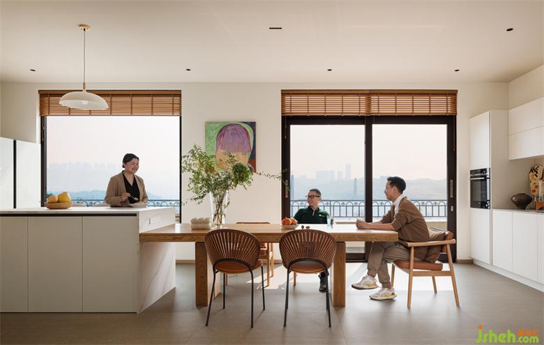 家從來不是一個(gè)范式,人在其中發(fā)揮著重要作用。重慶江岸別墅裝飾當(dāng)空間被使用,被賦予情緒,被人輸入日常生活氣息,在漫長且平凡的時(shí)間中成長,它便形成【家】。正如設(shè)計(jì)師周子鑒所總結(jié),“這套作品最大的亮點(diǎn),不是我的設(shè)計(jì),不是任何裝飾或軟裝,而是這個(gè)‘家’里的人”。設(shè)計(jì)將一切交給景觀、天氣和人,以場景鏈接家庭成員的互動(dòng),還原生活本真,讓居者輕松而無負(fù)擔(dān)的享有它帶來的幸福、愉悅。