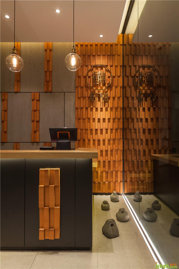 漁鋪是一家以廈門(mén)菜為主食的懷舊的現(xiàn)代餐廳,在餐廳裝飾材料使用上,大量采用閩南傳統(tǒng)古厝的紅磚元素材料來(lái)構(gòu)造。踏入餐廳大門(mén)既在灰色美巖板的墻面呈現(xiàn)一堵紅磚墻的設(shè)計(jì)構(gòu)造,喚起用餐者對(duì)老廈門(mén)紅磚古厝的記憶。在照明設(shè)計(jì)上,整個(gè)空間采用暖色系。在心理學(xué)的角度上來(lái)講,暖色系更能夠刺激食欲,而在暖色調(diào)的燈光下進(jìn)餐,也會(huì)顯得更加浪漫富有情調(diào)。用餐區(qū)域強(qiáng)調(diào)了局部照明,以實(shí)用性與情調(diào)兼具為出發(fā)點(diǎn),在局部照明燈具的選擇上使用了復(fù)古懷舊的小吊燈。墻面照明則是使用射燈來(lái)激活紅磚墻面裝飾。整個(gè)空間照明將材料的質(zhì)感、肌理,以及空間的色調(diào)進(jìn)行有機(jī)結(jié)合,營(yíng)造出一個(gè)氣韻生動(dòng)的用餐空間氛圍。