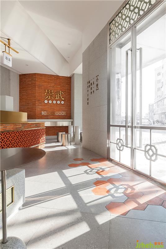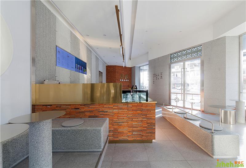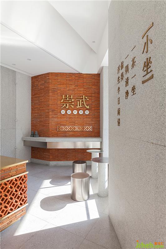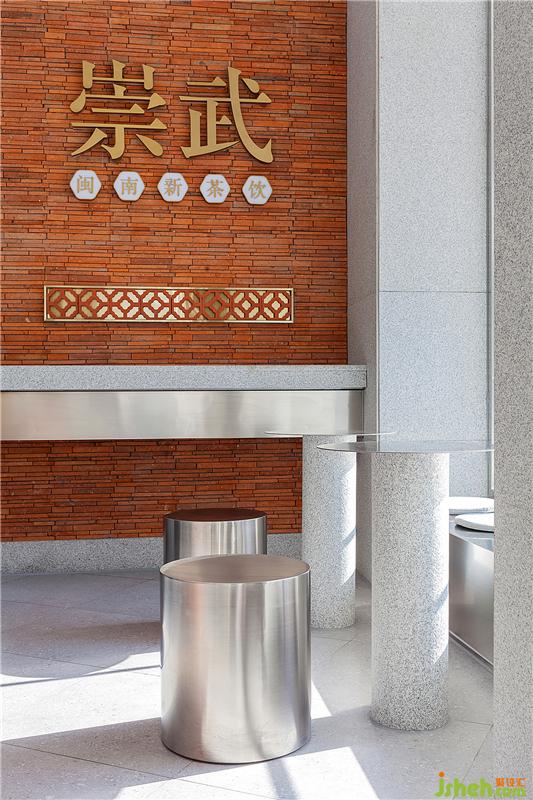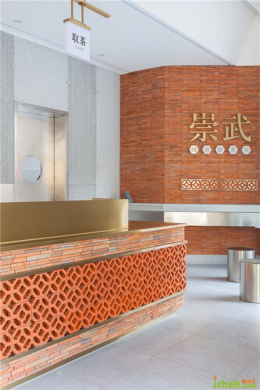 單里(在閩語語中是“等你”的意思)立足閩南本土,為閩南新式茶飲的新品牌。泉州餐飲設計室內(nèi)紅磚墻面上精致復古的黃銅字——“崇武”二字,點明了空間所在地為閩南崇武小鎮(zhèn)。