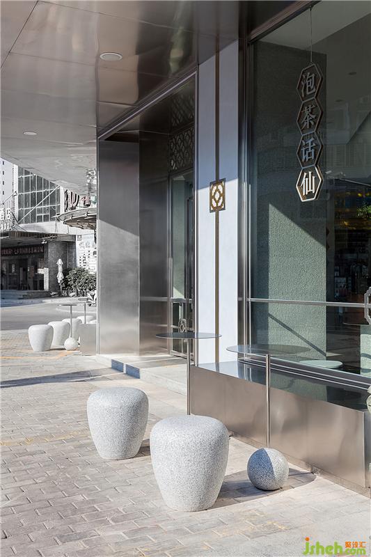 室內(nèi)外客座區(qū)空間的布局為自由開放形式,空間中摒棄繁雜與裝飾,使消費(fèi)者在空間體驗(yàn)過程中,享受到喝茶的純粹樂趣泉州餐飲設(shè)計(jì)。