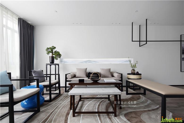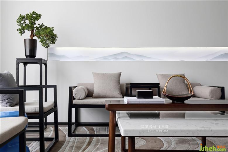 走廊的設(shè)計也頗具獨特性。在白色墻面和黑色頂面的基礎(chǔ)上加上一抹紅色直線,整個走廊就變得活躍了起來,同時搭配地面上的線性燈,在滿足視覺審美的同時又兼具動線引導(dǎo)的功能。在走廊末端墻面設(shè)置的紅色幾何造型壁燈既是對頂面色彩的呼應(yīng),同時作為一個視覺中心,在人們行走時產(chǎn)生探索的心理,從而降低長距離走動時的疲憊感。