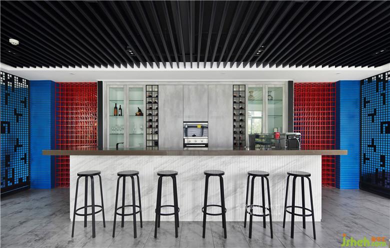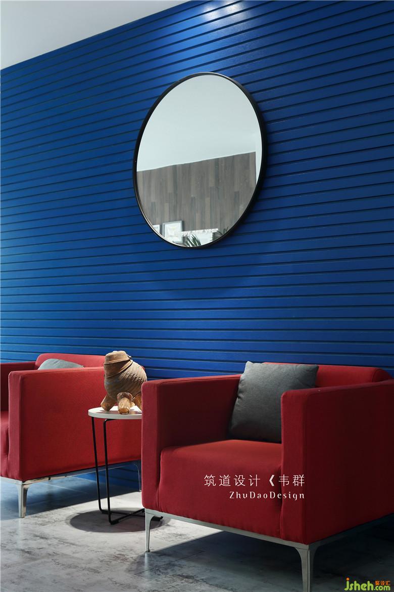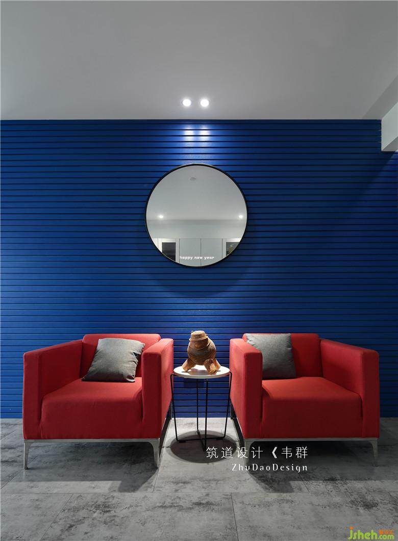 總裁辦公室為新中式風(fēng)格。這樣的風(fēng)格顯然更加適用于來(lái)賓訪問及商務(wù)洽談。然而在穩(wěn)重的新中式風(fēng)格中出現(xiàn)的一個(gè)頗具現(xiàn)代風(fēng)格的藍(lán)色茶幾,就會(huì)一下成為躍動(dòng)的視覺亮點(diǎn),為初次見面的人提供了話題,同時(shí)也表達(dá)了空間使用者無(wú)法掩飾的幽默風(fēng)趣、不拘一格的性格。