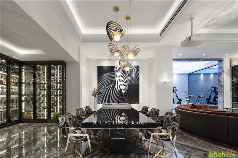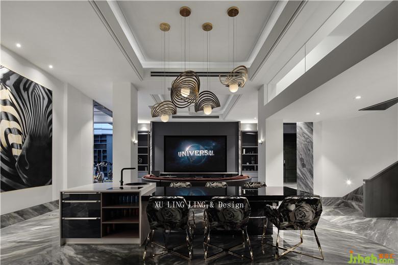 本案是兩套聯(lián)排別墅打通的戶型、業(yè)主是三口之家,一對(duì)事業(yè)有成的夫妻和