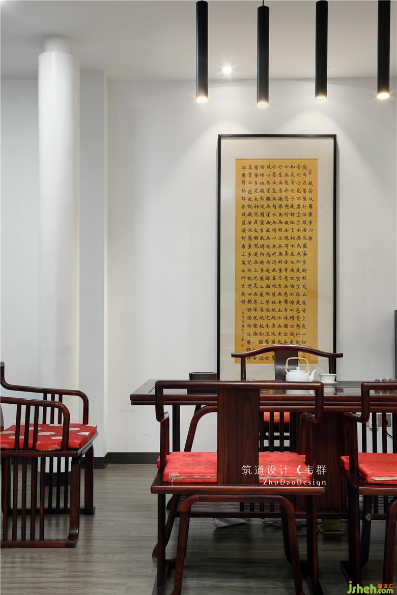 應(yīng)業(yè)主要求,也為了方便總經(jīng)理與工人之間更好地溝通交流,在墻上預(yù)留了輸送口,幫助業(yè)主及時下發(fā)文件。然后巧妙地運用字畫進行裝飾,毫無破綻。