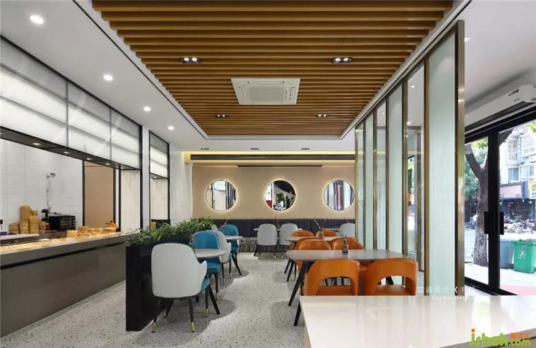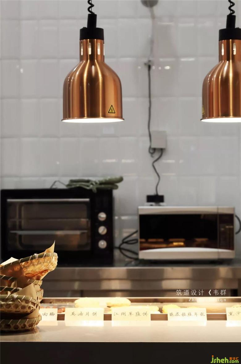 其中正對(duì)街景的是一整面明檔,干凈衛(wèi)生。后廚的所有操作,客戶都能看得見(jiàn);同時(shí)也充當(dāng)了展示作用,工作人員的的配餐流程,細(xì)節(jié)態(tài)度也是店鋪的一個(gè)文化呈現(xiàn)。在空間概念上,設(shè)計(jì)師為客戶的選餐、取餐、購(gòu)餐,構(gòu)建了一整條流暢的時(shí)間動(dòng)線。