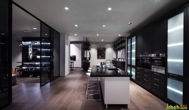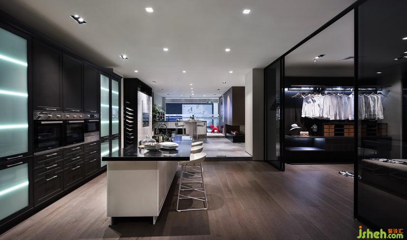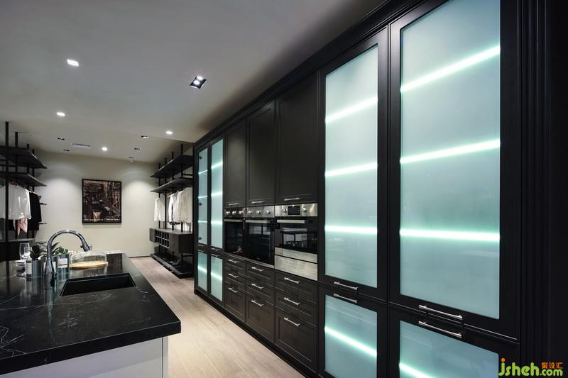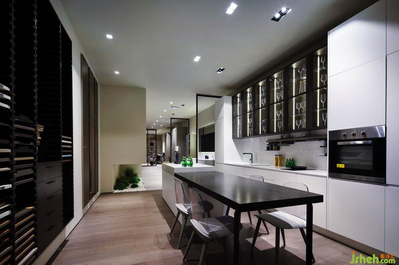 后面的定制的整體櫥柜和電器柜延伸一起,大氣不失格調(diào)。在廚房進(jìn)去里面是一個(gè)小小的客廳在做飯的同時(shí)還可以和家人一起互動(dòng),增加情感交流。有書(shū)桌、餐邊柜、展示柜。是不是很全面,所以說(shuō)廚房不再是單純的廚房。