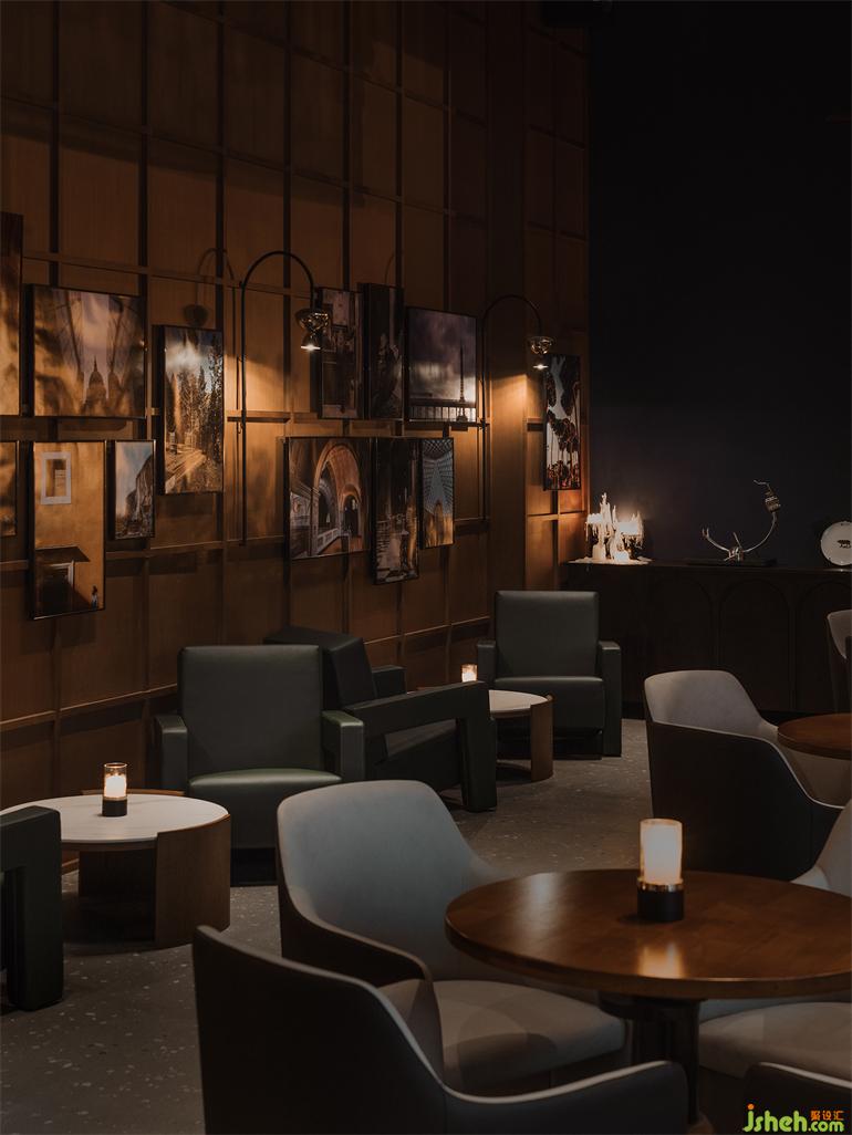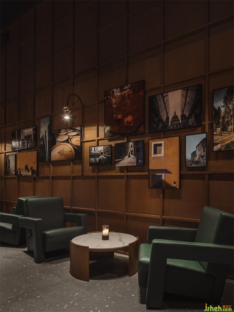 No matter how dazzling a drama is, there is also quiet and warm moments in it. Known for its elegance, the British style is not limited to rich colors, because black and white is another kind of expression. In Time Whiskey Bar, the stage created by two designers from SIAD (Shenzhen Storybox Interior Architect design CO.,LTD.), only one wall is given to Hihope Zhu. Hihope Zhu joked that this quiet wooden lattice walll was his favorite wall in the whole space because the photographs on the wall recorded the stories about what he had met during his study in a foreign country at the most important turning period in his life. It may take more than three whole days and nights for Hihope Zhu, a usually taciturn man, to tell all these stories.