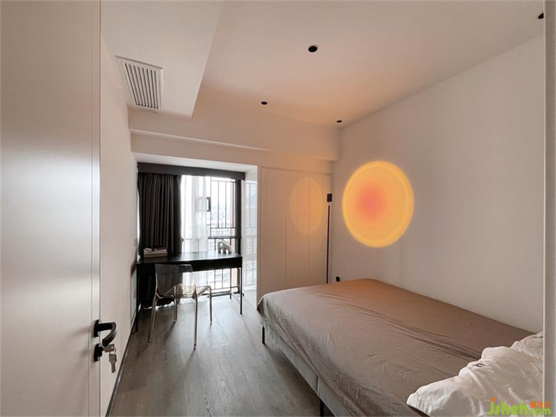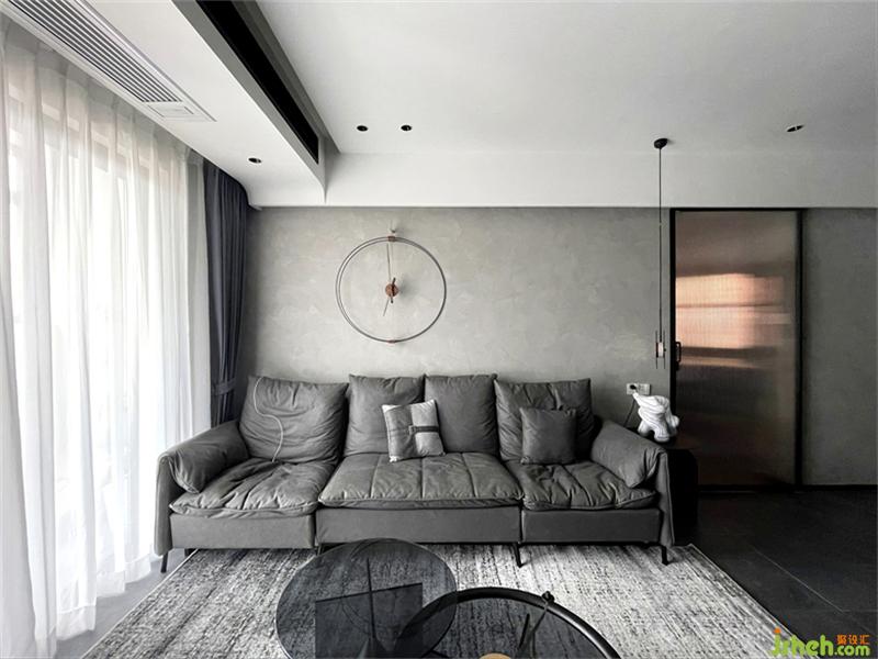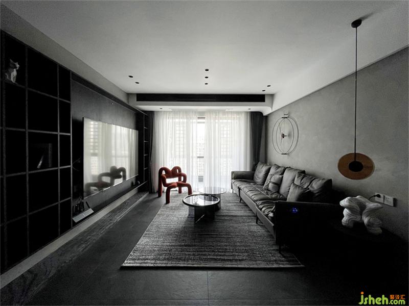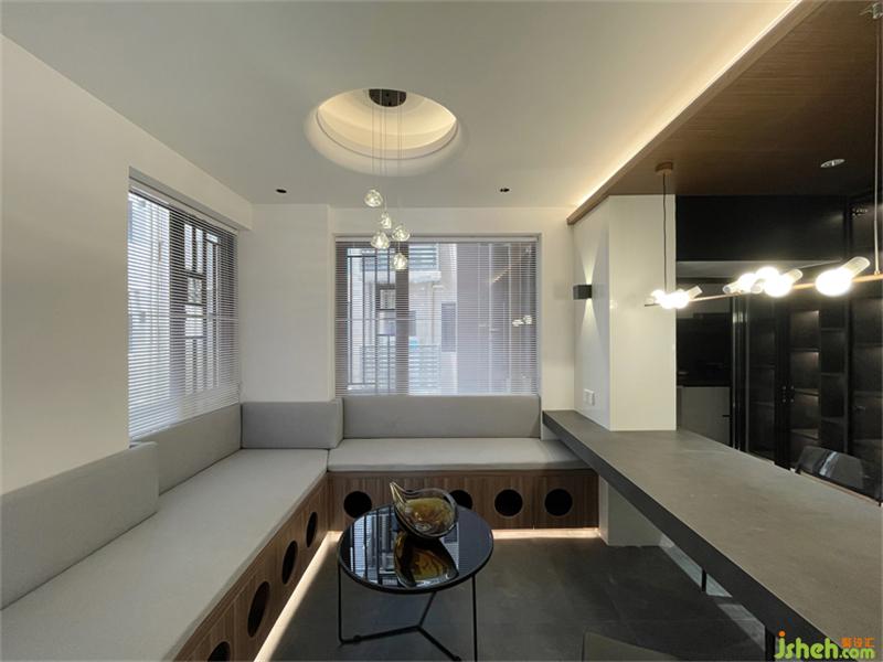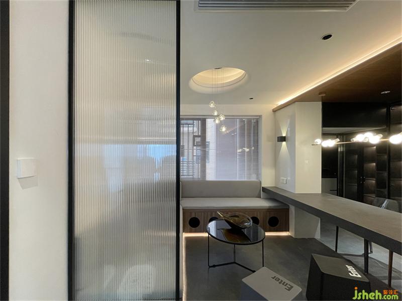 室內(nèi)設計推拉門形成一個面,延長推拉門暗藏軌道做成燈帶形成線,線與面的結(jié)合,面于線上移動,同時在電視背景墻頂上設計一條平行燈帶形成兩條相互平行的長線,既解決了照明問題,增加了空間的氛圍感,也讓整個空間多了一分張力。