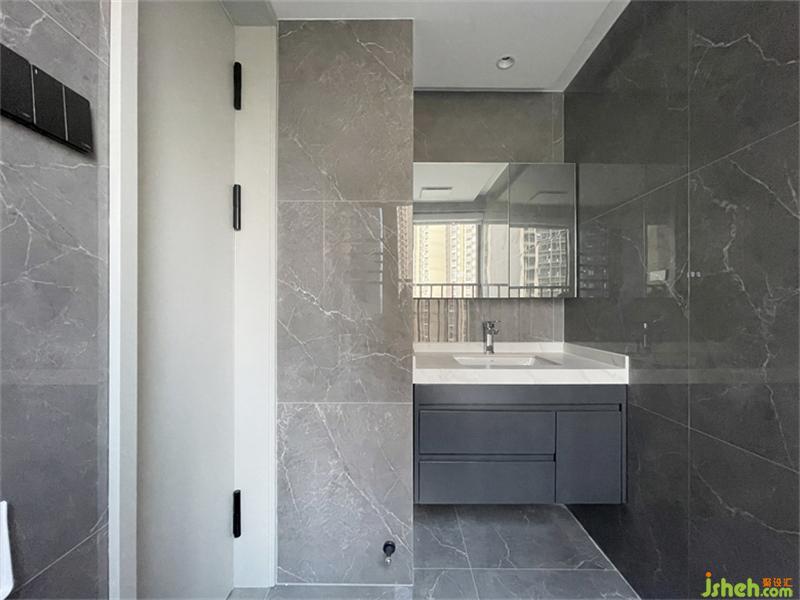 ?公衛(wèi)-原來(lái)尺寸偏大,縮小比例,讓次臥房變大,定制的白色花紋巖板洗手臺(tái),臺(tái)面延伸至壁掛式馬桶位,既增加了臺(tái)面的儲(chǔ)物實(shí)用度,又增加了淋浴區(qū)的空間,讓原本不可能的干濕分離得以實(shí)現(xiàn),大大的改善了衛(wèi)生間的水汽問(wèn)題,也更整潔美觀了。