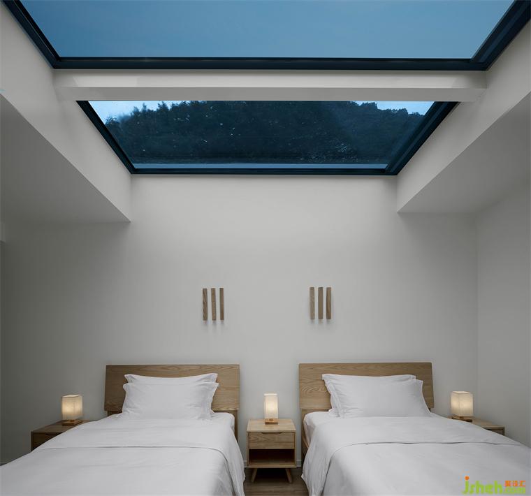 留白和灰是一種適度的從容,是空間的另一層境界。室外,天光與水光交融,自然和鳴;室內,以自然肌理雕琢質感,溫潤端雅。