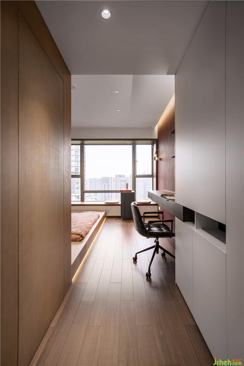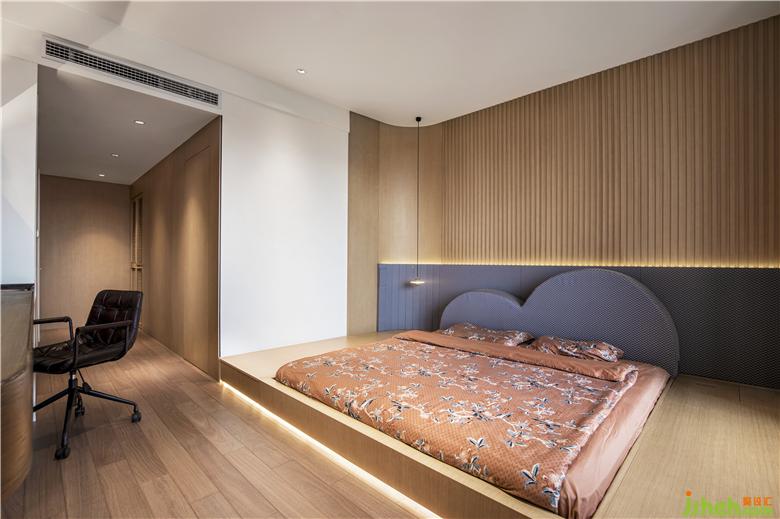 The master bedroom echoes the whole in material and color. The lamp belt at the head and foot of the bed creates a warm and quiet atmosphere to ensure the residents' sleep comfort and enjoy a good night's sleep.