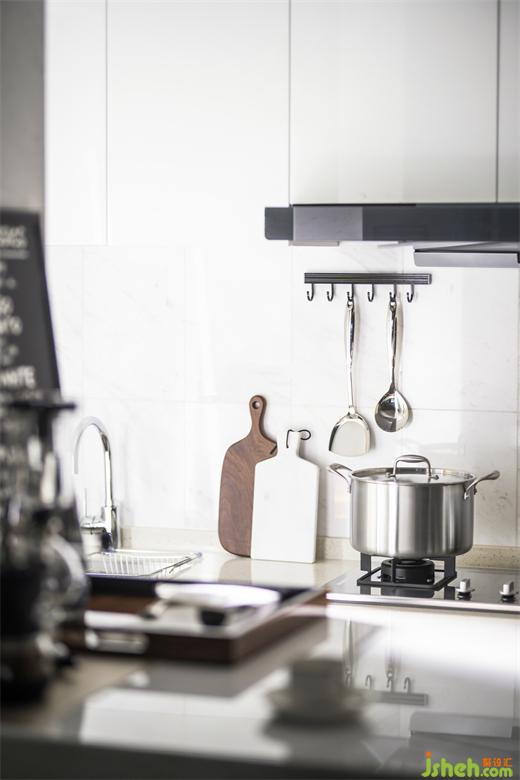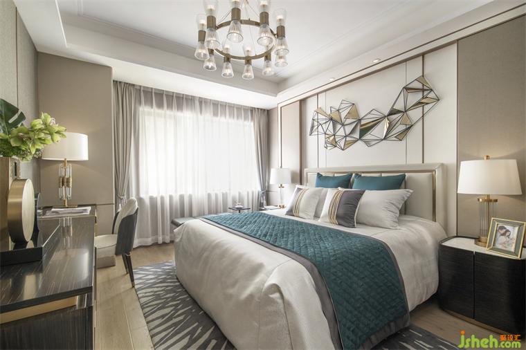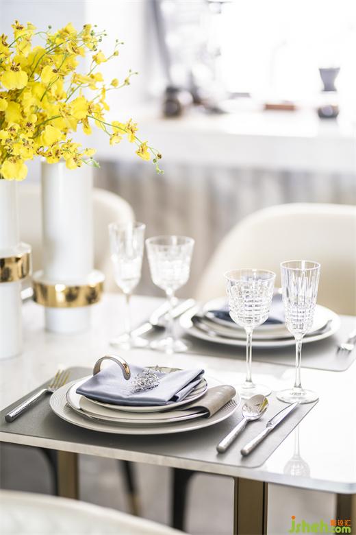 開(kāi)放的客餐廳、廚房,空間更寬敞明亮,動(dòng)性亦更流暢。山水抽象畫,流動(dòng)的靈性,使空間更具層次及藝術(shù)格調(diào)。晶瑩剔透的水晶燈,精致的餐具擺飾,經(jīng)典時(shí)尚的格紋,無(wú)一不在宣示品質(zhì)的生活追求。此外,花飾朝氣蓬勃,樣板房設(shè)計(jì)不僅滿足女主的喜好,亦為空間注入自然活力。