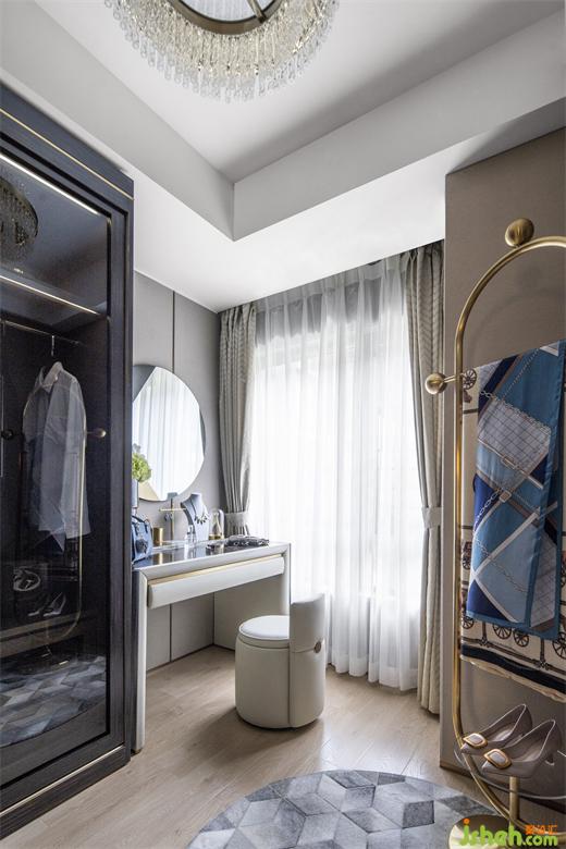 衣帽間格調(diào)同樣溫馨,又是設(shè)計(jì)師一處時(shí)尚之作。時(shí)髦的絲巾、高雅的單鞋、優(yōu)美的鮮花,足見(jiàn)屋主對(duì)生活的熱愛(ài)和品質(zhì)追求。