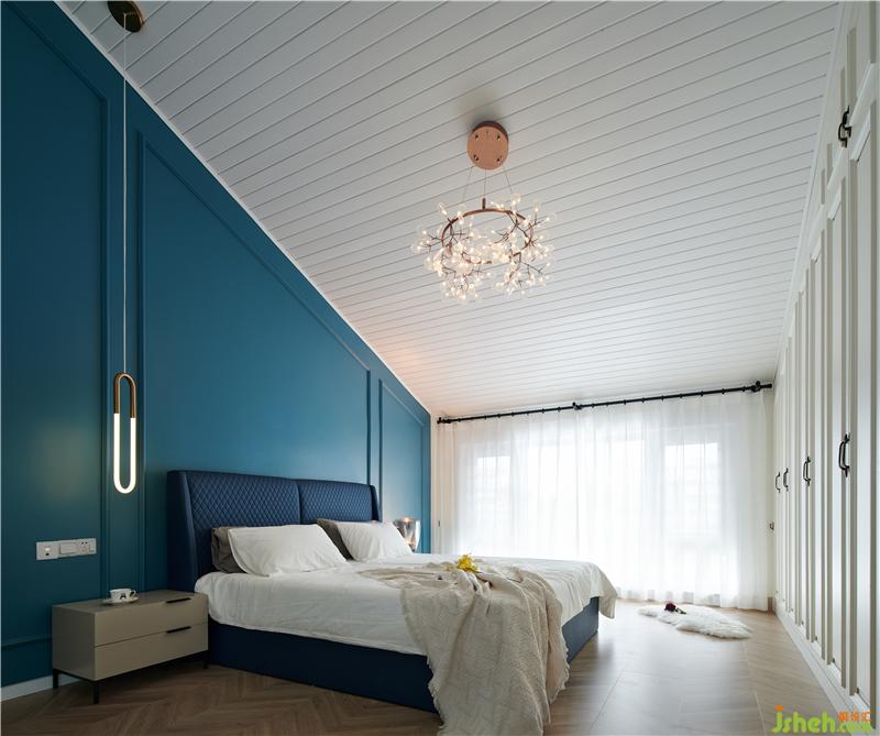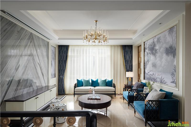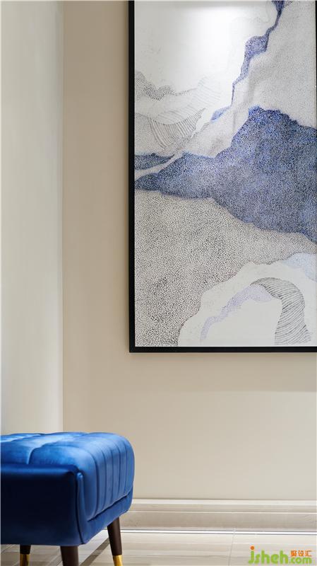本項目圍繞當代歐式雅致生活倡導的人群生活方式展開,藍色家私與淺色面料強烈而時尚,加入適當的色彩融合其中,加強空間的體驗感和參與感。雅致的幾何文理點綴以時尚的柳丁,舒適的絲絨材質則與雅致的香檳金金屬產生碰撞,點綴熱烈的顏色系花藝或飾品提升空間時尚的氣息,通過這些主打元素的連續(xù)性使用,以及材質層次豐富的打造,呈現(xiàn)出歐式雅致的時尚情懷。真皮與布藝質感的沙發(fā),金屬質感的茶幾與吊燈,絨毛地毯,木制電視柜,玻璃器皿..裝修材質多樣化的綜合運用讓材料之間的層次更加豐富,剛與柔,光與暗,虛與實,輕與重的對比更加清晰,利用材質的差異化極大地充實了視覺感受,體會到不同質感帶來的多重體驗。色彩鮮明的壁畫組合為奢華的空間之中增添了更多的藝術氣息,柔和的質感中和了金屬、瓷磚的冷硬,帶來更舒適的審美享受。