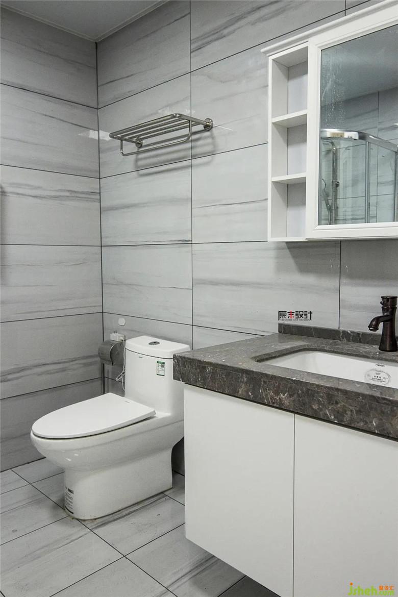 ▲ 衛(wèi)生間的浴室柜懸空,不留衛(wèi)生死角,它既能整體收納,又美觀實(shí)用,每個(gè)細(xì)節(jié)都很精致。