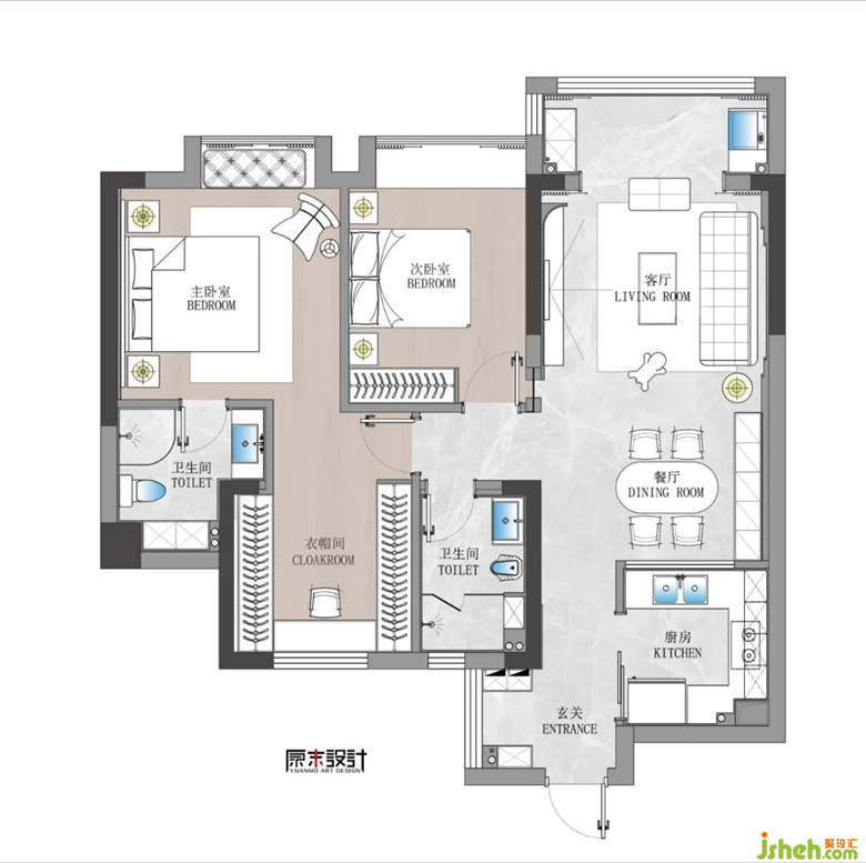 ■主臥:將主臥室劃分為衣帽間、臥室區(qū)和主衛(wèi),每個(gè)區(qū)域互有私密性,且具有良好的實(shí)用功能。