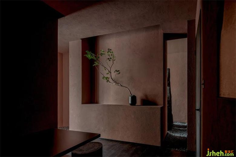 入口的端景,是一塊從中間劈開的石塊,述說著盤古開天辟地的傳奇故事。左邊的夯土墻,地面的碎石,似乎帶酒館設(shè)計(jì)我們來到那個(gè)遠(yuǎn)古的時(shí)代,那是文明的起源,人類智慧的開始。