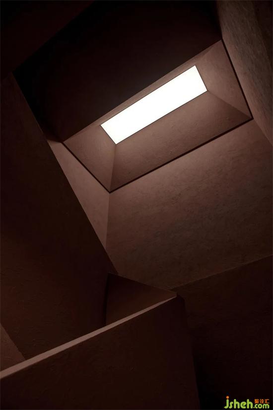 在遠(yuǎn)古劈開的洞穴中行走,天光散下,穿透至室內(nèi),在不同材質(zhì)上映照出熠熠光影,呈現(xiàn)飽含深度的立體質(zhì)感。我們保留了這種最原始的關(guān)系,運(yùn)用最純粹的自然力量,將天光帶到室內(nèi),光影交錯(cuò),這是現(xiàn)代技術(shù)與自然的深切對話。