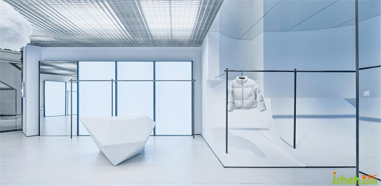 空間所表達(dá)的不是冰冷,而是冰面下的靜謐。平面與鏡面的交互,上海專賣店設(shè)計(jì)將有限的視覺空間向外無限延伸,人們的想象空間也被帶到了另一個(gè)未被探索過的世界。