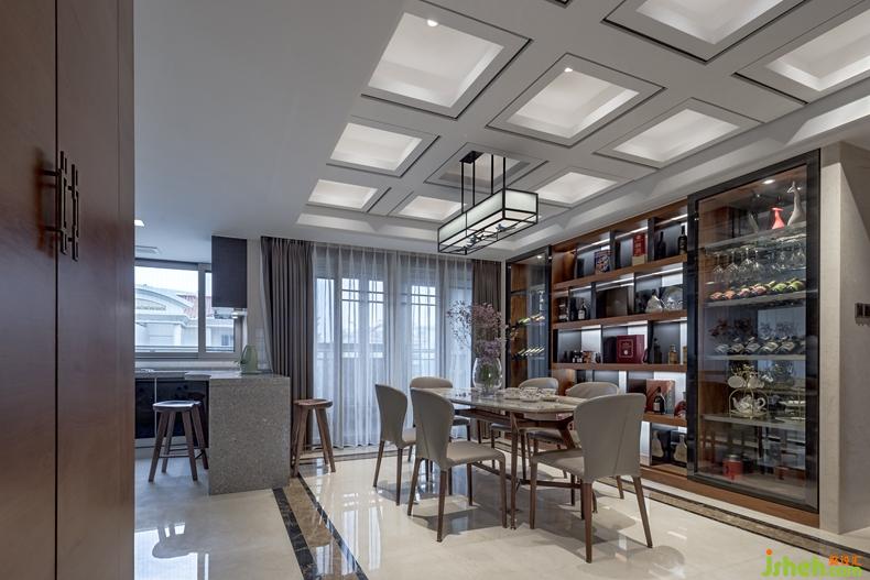 餐廳位置遵循人文的生活習(xí)俗又結(jié)合當代審美升華創(chuàng)作,封閉式與開放式廚房,與餐廳三位一體,我們或許可以間餐、可以吧臺對飲暢聊、可以團聚就餐,看這樣一個個場景,不管在空間的表現(xiàn)力還是生活感染力上,都實現(xiàn)了高度統(tǒng)一。室內(nèi)設(shè)計師