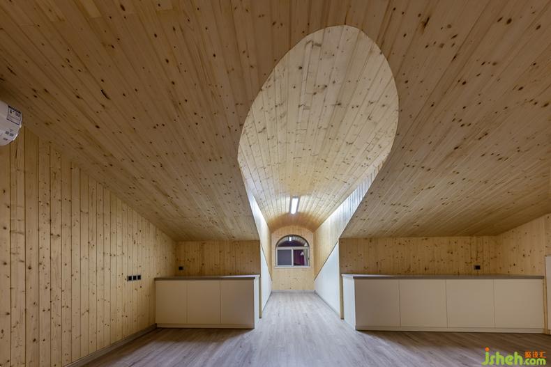 閣樓結(jié)合原有斜面屋頂結(jié)構(gòu)節(jié)約裝飾,沒有極限的圍合,自由舒心,時而瑜伽、時而靜靜地看書、時而玩耍盡顯現(xiàn)代生活氣息。