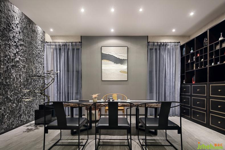 “取景布景與立象立意”的設計手法,體現(xiàn)在空間氛圍的營造與功能區(qū)域之間的關聯(lián)性,所以同時具備“景與意”的水景區(qū),就有起承轉(zhuǎn)合的作用,彷如一道天然屏風將空間聯(lián)動。而在客廳、餐廳、廚房、茶室,設計師也運用不同的質(zhì)、色、形、體,以統(tǒng)一、和諧等為審美要素,通過視、聽、鳴、觸等感官激發(fā)出人對于空間意境的想象。深圳裝修公司